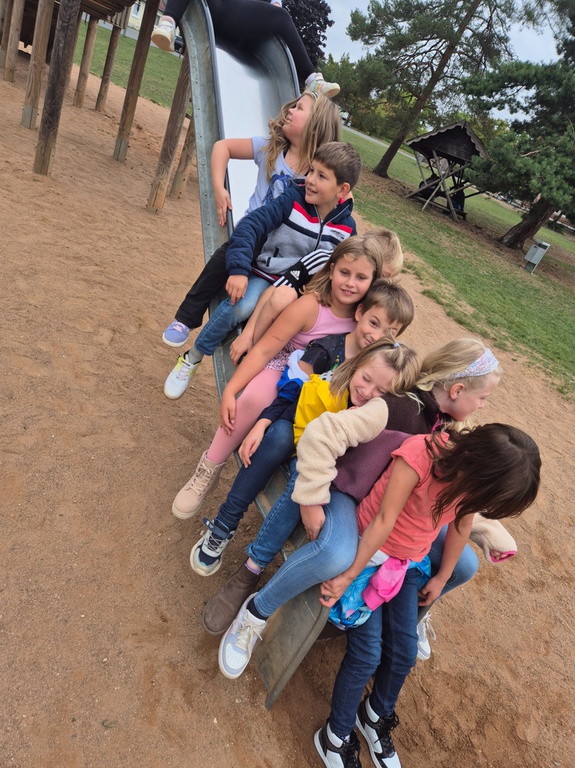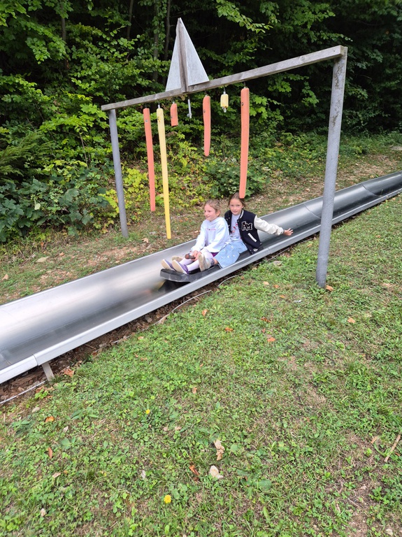 Zu unserer 1. Klassenfahrt vom 10.09.-12.09.25 sind wir mit dem Bus zur Feuerkuppe gefahren. Es waren fast alle Schülerinnen und Schüler der 3a und 3b dabei. Abfahrt war am Mittwoch um 9 Uhr. Wir waren alle sehr aufgeregt. Als wir um 10 Uhr angekommen sind, haben wir unser Gepäck abgestellt und durften erst einmal auf dem Spielplatz spielen. Danach sind wir zum Mittagessen gegangen. Es gab Schnitzel mit Kartoffel, Gemüse und Soße. Es war sehr lecker. Im Anschluss sind wir in den Affenpark und zur Sommerrodelbahn gelaufen. Im Affenpark sind die Affen auf uns geklettert das war sehr schön. Anschließend durften wir ein paar Mal die Sommerrodelbahn fahren. Als wir wieder zur Feuerkuppe gelaufen sind, durften wir endlich unsere Bungalows beziehen. Wir waren in 4 Bungalows und hatten 4er und 6er Zimmer. Nach dem Abendbrot durften wir noch ein wenig spielen, dann ging es zum Duschen und wir haben 22:30 Uhr geschlafen.