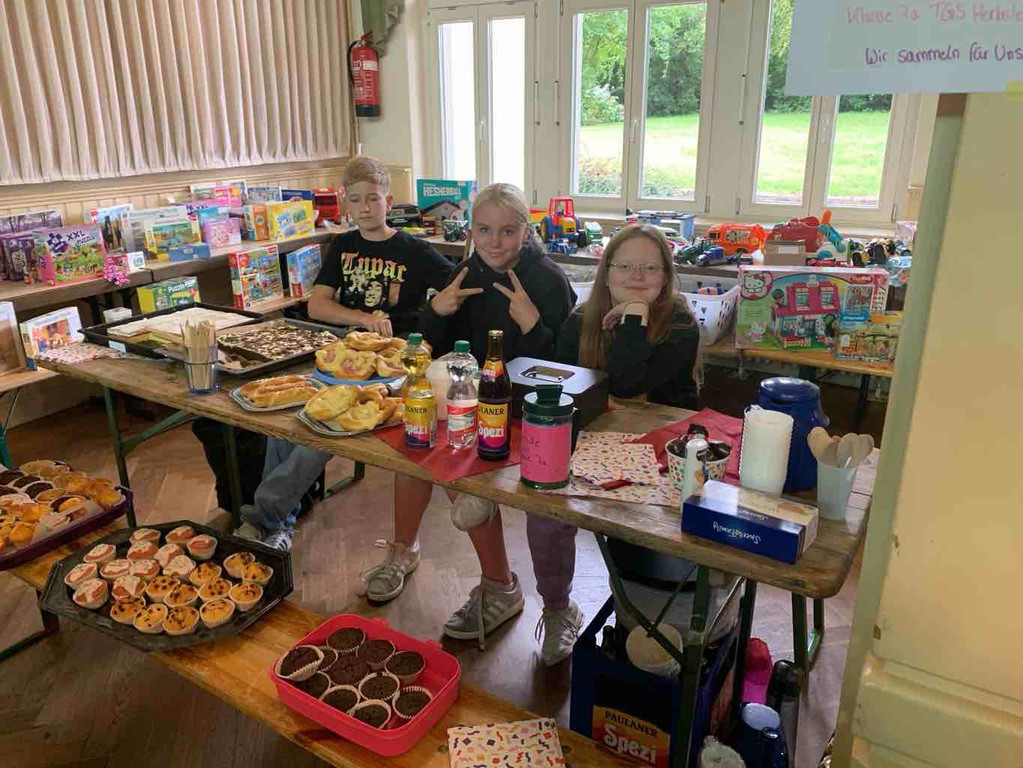 "Wir möchten uns bei allen Eltern bedanken, die gebacken, am Stand mitgeholfen und alles organisiert haben. Auch ein Dankeschön an Frau Weisheit, die ebenso unterstützte." Emily (stellvertretend für die 7a)
