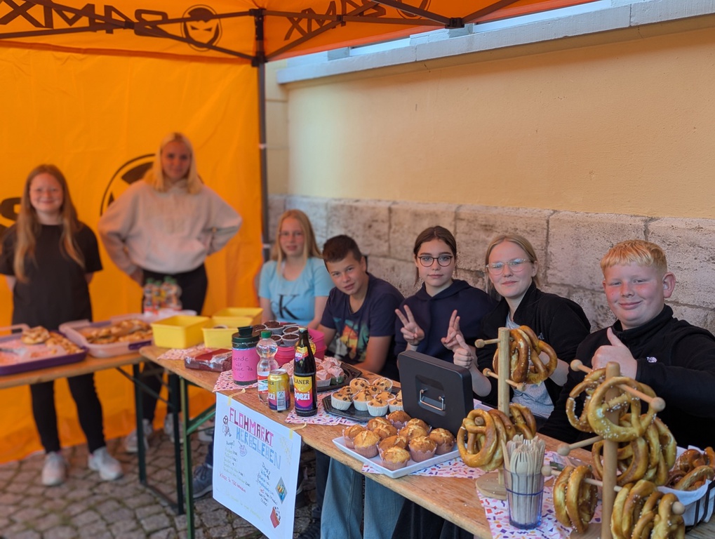 Dank engagierter Eltern und Schüler, verkaufte die Klasse7a fleißig Kuchen, Waffeln, Brezeln und andere Leckereien zum Kindersachenflohmarkt in Herbsleben und erarbeite sich so Geld für die Klassenkasse. Diese soll für einen Wandertag am Ende des Schuljahres genutzt werden. Es war ein tolles Gemeinschaftserlebnis, bei dem viel gelacht wurde.