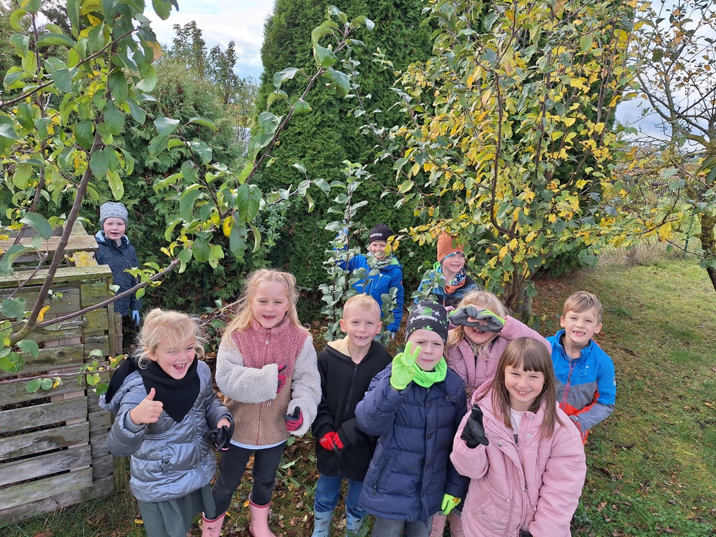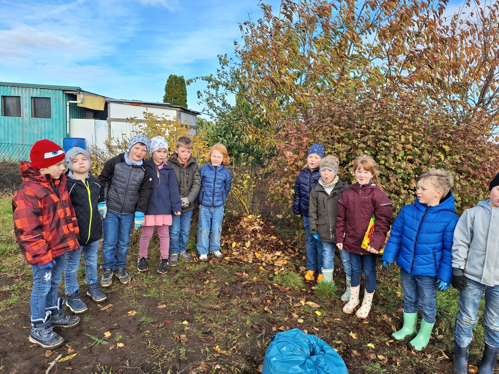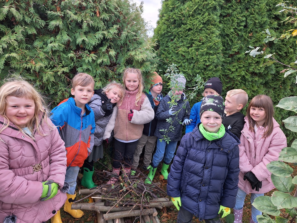 Für die Klasse 1a ging es in den Schulgarten, um einen Igelunterschlupf zu bauen. Das Thema „Igel“ hatte die Klasse im Vorfeld im Fach Schulgarten intensiv behandelt. Mit viel Eifer sammelten die Schülerinnen und Schüler trockene Blätter und kleine Äste. Anschließend bauten sie daraus einen gemütlichen Igelunterschlupf, damit die Igel im Winter einen warmen Platz zum Schlafen haben. Zum Schluss schauten sich alle an, was sie geschafft hatten, und waren stolz auf ihr Werk. Jetzt hoffen die Kinder, dass bald ein Igel im Schulgarten einzieht.