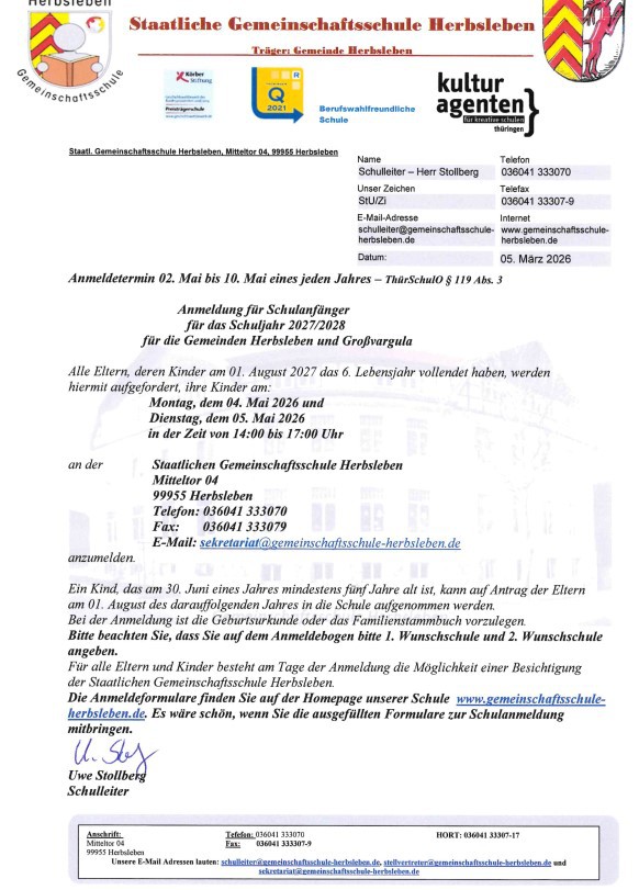 Im folgenden Dokument finden Sie alle Informationen zur Schulanmeldung.