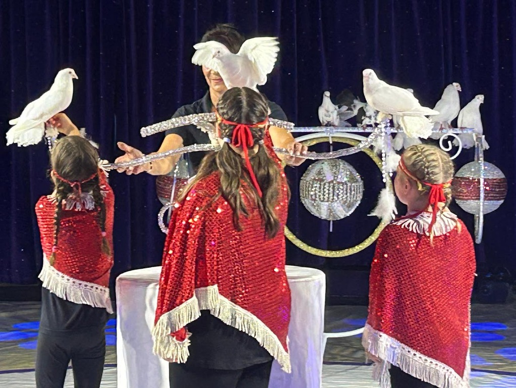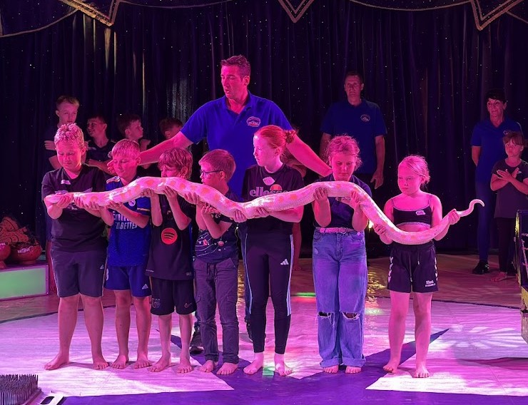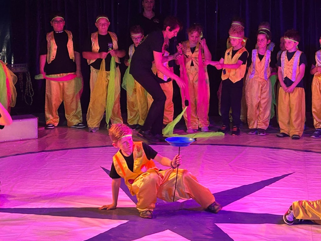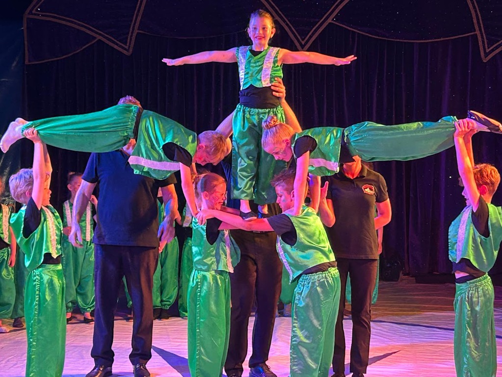 In der Woche vom 16.06. - 20.06.2025 hat uns der Projektzirkus „Simsalabim“ in unserer Grundschule besucht. Am Montag sind wir zum Zirkus gegangen, um die Profivorstellung anzusehen. Es war super cool! Sie haben mit Feuer gespuckt, mit Messern geworfen und mit Tieren Kunststücke gezeigt. Danach wurden wir in Gruppen eingeteilt. Es gab Fakire, Akrobaten, Seiltänzer, Clowns, Zauberer, Jongleure, Hula Hoop, Hunde und Tauben. Dienstag und Mittwoch haben wir fleißig geprobt. Es war anstrengend, hat aber viel Spaß gemacht. Besonders am Mittwoch haben wir nochmal gründlich geübt, denn am Donnerstag waren gleich zwei Vorstellungen. Morgens hatten wir die Generalprobe. Der Kindergarten und die 5. Klassen haben zugeschaut. Wir waren sehr aufgeregt, aber alles ist gut gelaufen. Am Nachmittag hatten wir den nächsten Auftritt, dieses Mal mit richtigen Kostümen und Schminke im Gesicht. Außerdem haben da das erste Mal die Eltern zugeschaut, sie fanden uns richtig gut. Am Freitag fand der letzte Auftritt statt, es war super cool. Alle Schüler wurden integriert, das fanden wir toll. An beiden Tagen waren die Zuschauer sehr begeistert und erstaunt, was wir in der kurzen Zeit alles gelernt haben. Die Projektwoche hat uns sehr viel Spaß gemacht und wir alle haben Mut gezeigt, deshalb möchten wir ganz laut schreien: Manege frei für die Kinder der TGS Herbsleben! Klasse 3b, im Auftrag der Grundschule